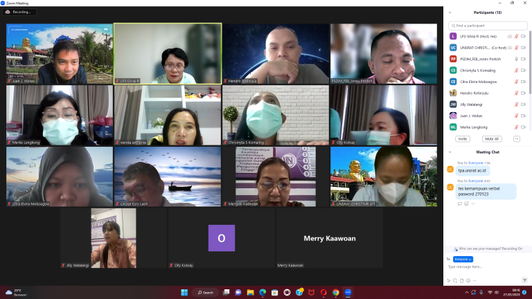 Kegiatan Pendidikan Dan Pelatihan PENINGKATAN KETERAMPILAN DASAR TEKNIK INSTRUKSIONAL (PEKERTI) Kerjasama Universitas Sam Ratulangi (UNSRAT) Manado Dan Universitas Kristen Indonesia Tomohon (UKIT) Dilaksanakan Pada Hari Selasa Tanggal 01 Februari 2023 Melalui Daring / Zoom Meeting Kegiatan Di Ikuti Sebanyak 50 Peserta…