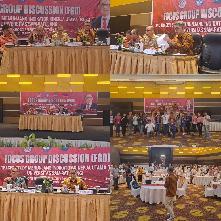 KEGIATAN FORUM GROUP DISCUSSION PIC TRACER STUDY MENUNJANG IKU 1 UNSRAT TAHUN 2024 DI SELENGGARAKAN PADA TANGGAL 27 – 28 SEPTEMBER 2024
