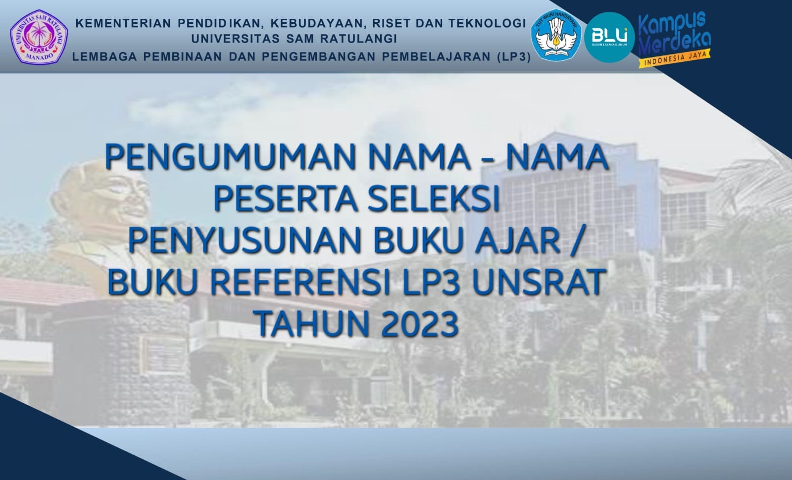 PELAKSANAAN SELEKSI PENYUSUNAN BUKU AJAR/BUKU REFERENSI LP3 TAHUN 2023