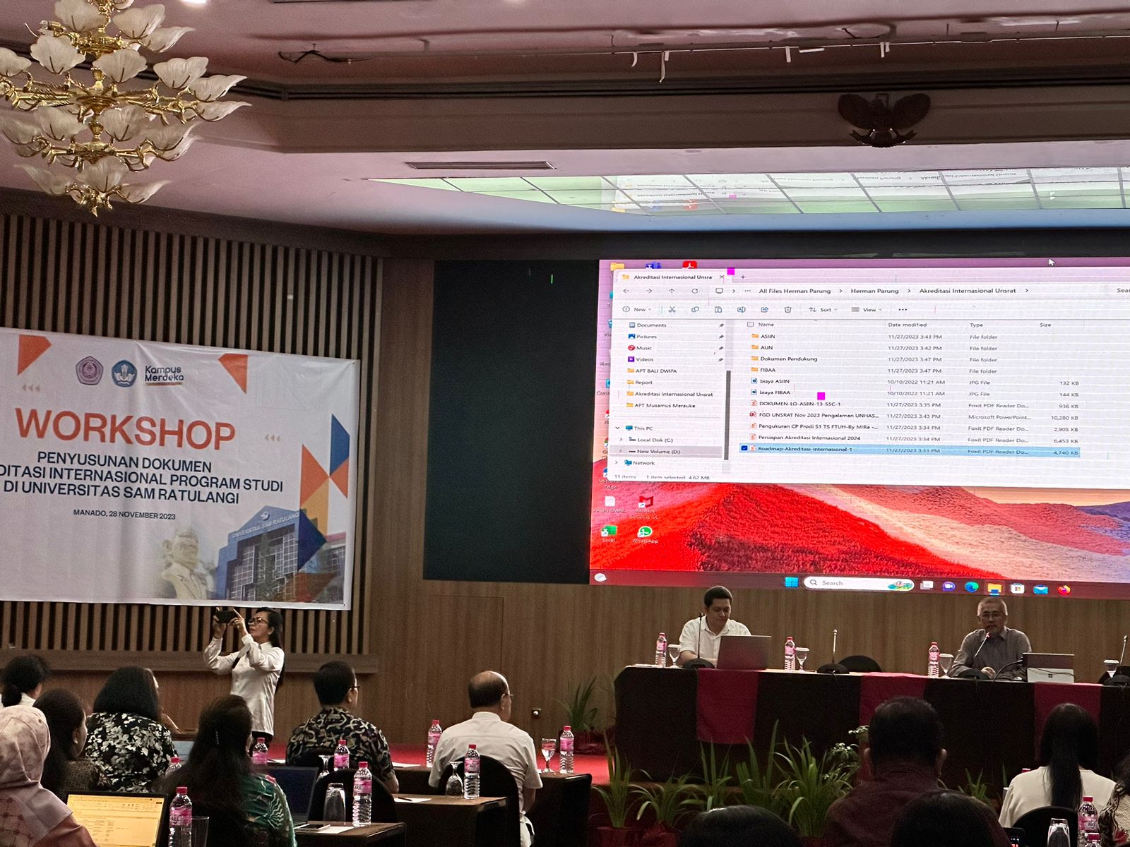 Selasa 28 November 2023, bertempat di Hotel Arya Duta Manado, Universitas Sam Ratulangi mengadakan kegiatan Workshop Penyusunan Dokumen Akreditasi Internasional Program Studi. Kegiatan Workshop ini diselenggarakan untuk persiapan penyusunan dokumen akreditasi internasional yang diikuti oleh para Dosen dari 9 Fakultas yaitu : 1) Fakultas Kesehatan Masyarakat, 2) Fakultas Perikanan dan Ilmu Kelautan, 3) Fakultas Pertanian, 4) Fakultas Ekonomi dan Bisnis, 5) Fakultas Hukum, 6) Fakultas Matematika dan Ilmu Pengetahuan Alam, 7) Fakultas Peternakan, 8) Fakultas Ilmu Budaya, 9) Fakultas Teknik dan Pascasarjana.